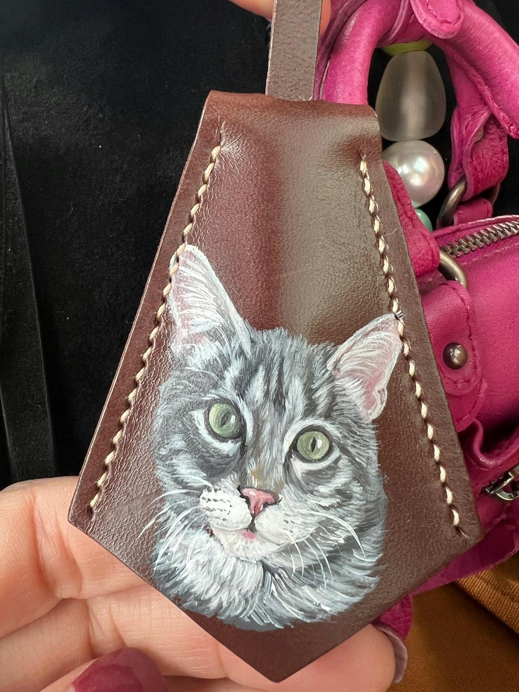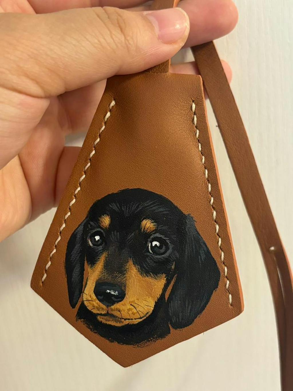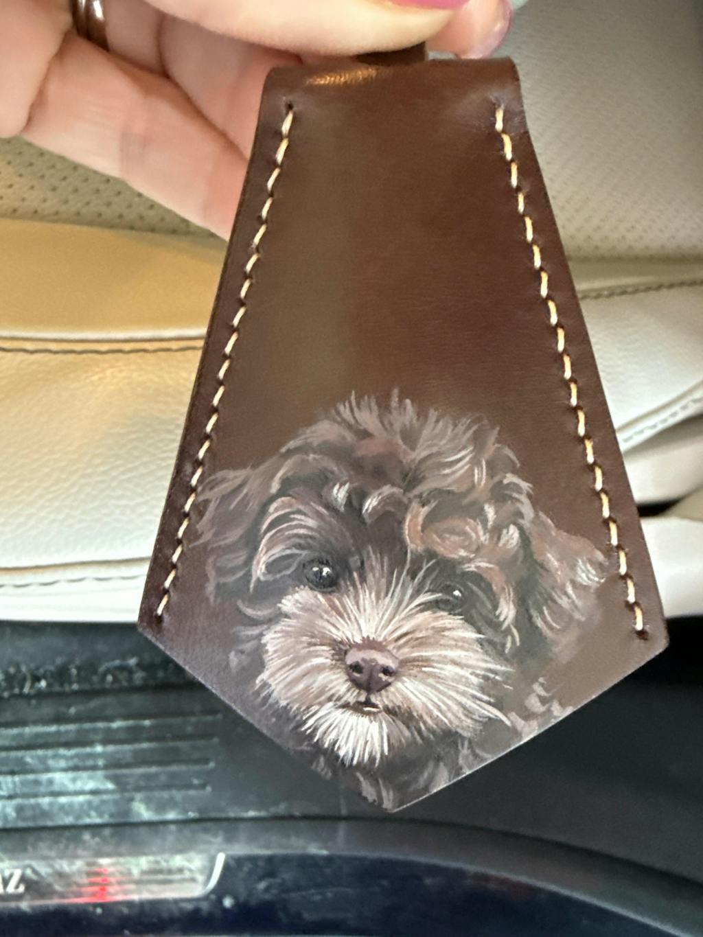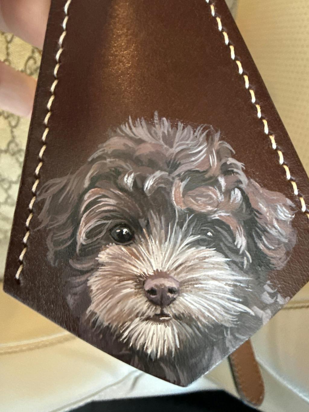 I absolutely adore this leather bag charm! This hand-painted portrait of my adorable Yorkshire Terrier is an exact replica of the photo. Last year, I lost my beloved boy, and this charm serves as a wonderful memory of Tiger. 🤎🕊️