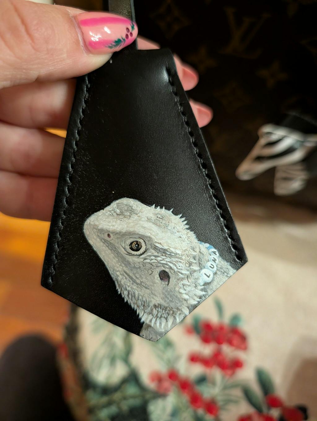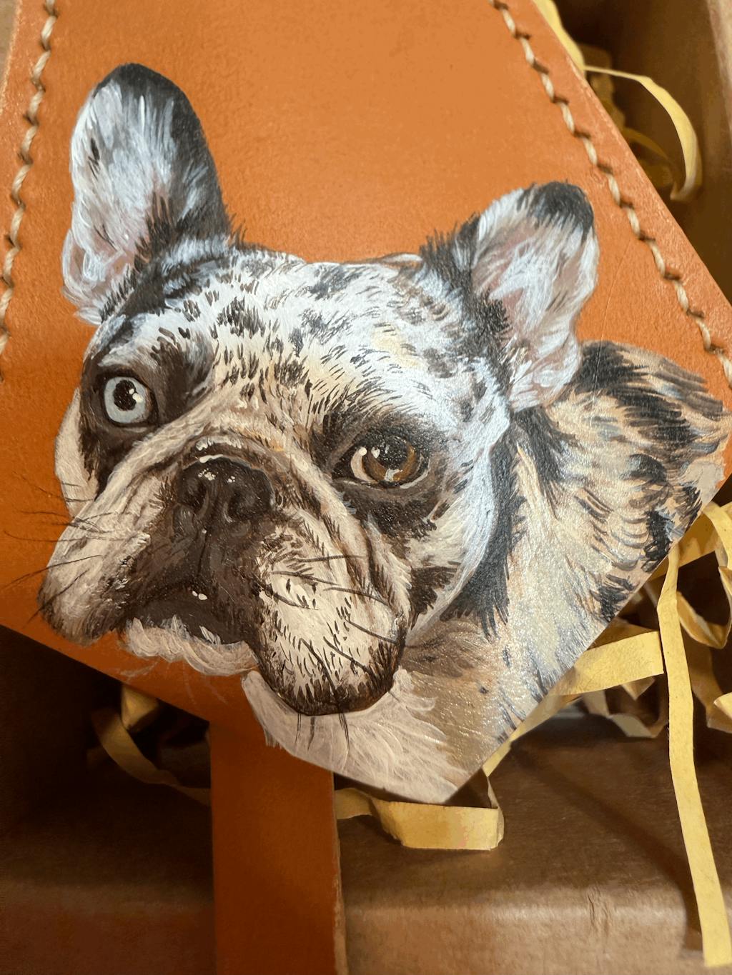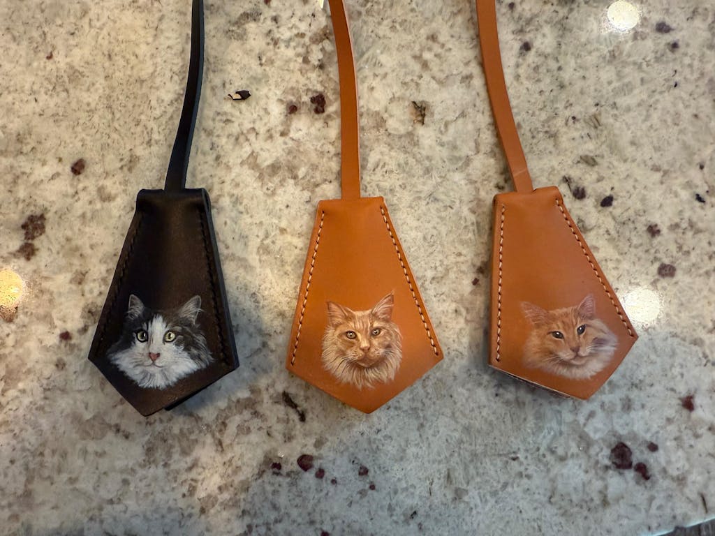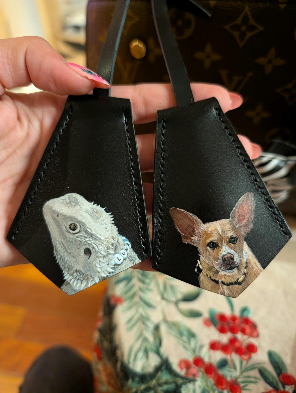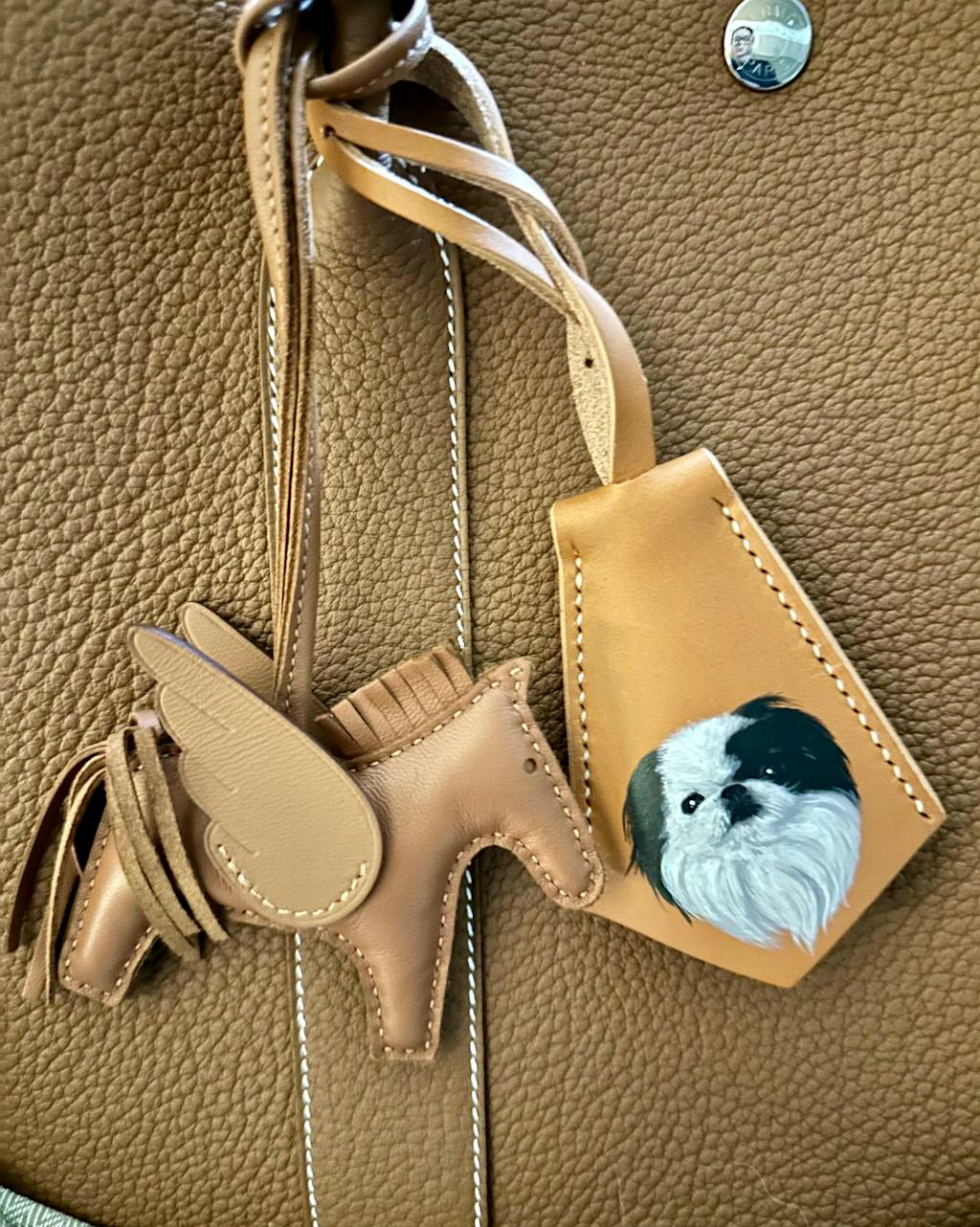 I absolutely adore this leather bag charm! This hand-painted portrait of my adorable Yorkshire Terrier is an exact replica of the photo. Last year, I lost my beloved boy, and this charm serves as a wonderful memory of Tiger. 🤎🕊️